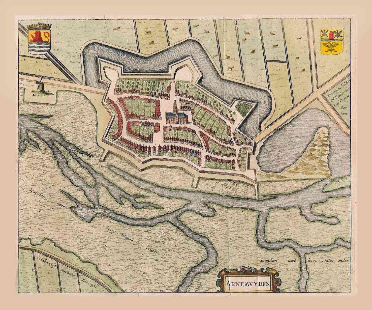 Stadsplattegrond van Arnemuiden in 1657 uitgegeven door Janssonius.
