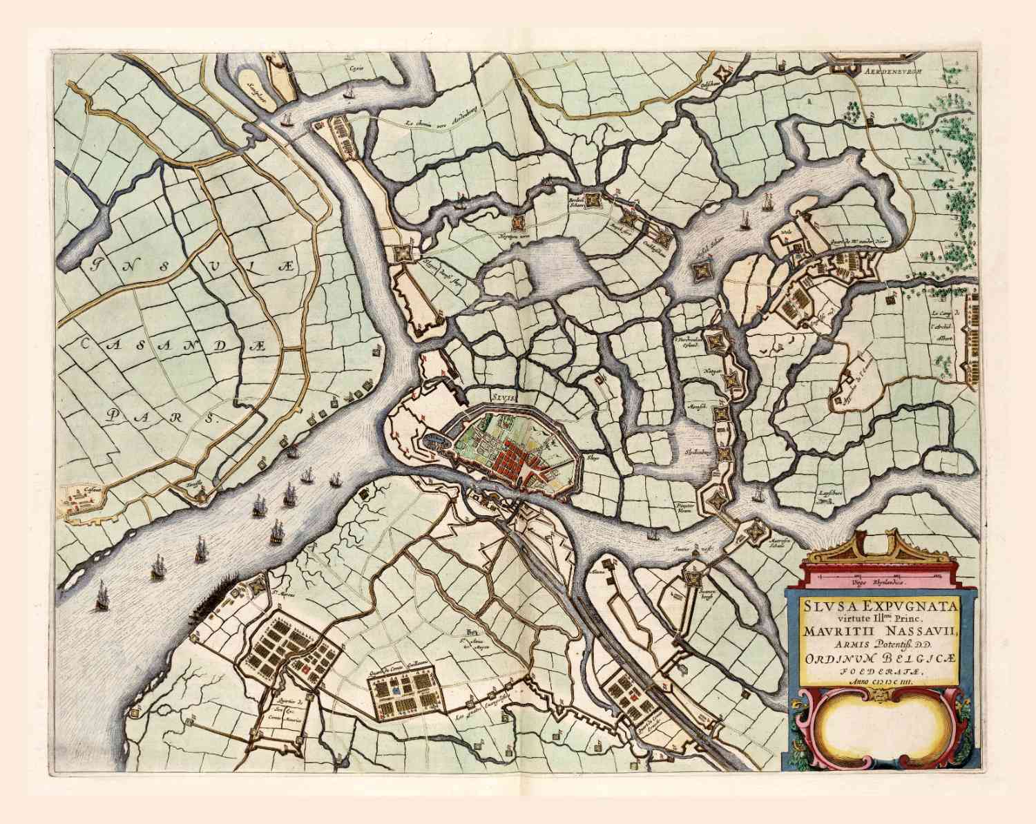 Sluis 1649 Blaeu belegering 1604