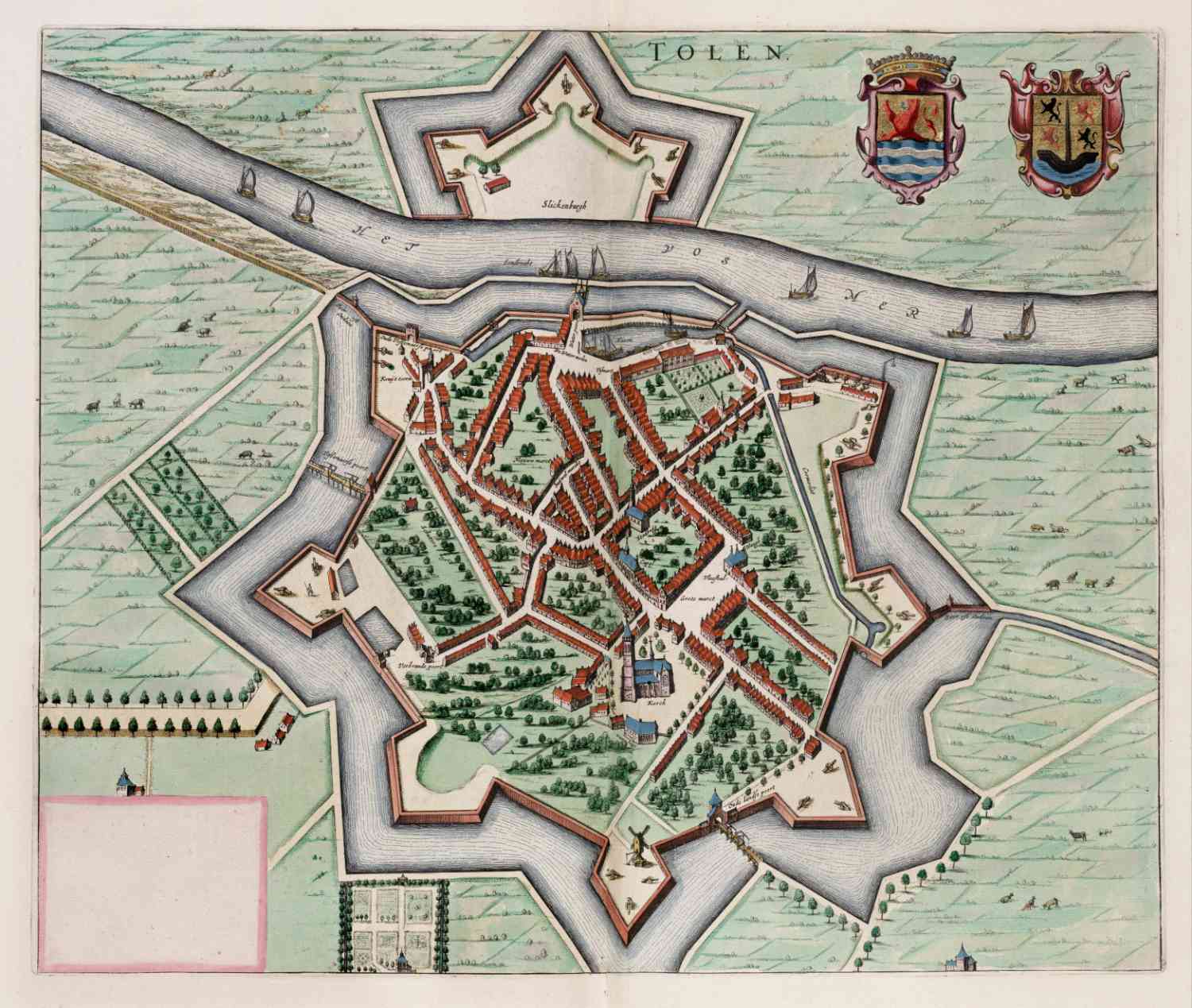 Stadsplattegrond van Tholen in 1649 uitgegeven door Joan Blaeu.