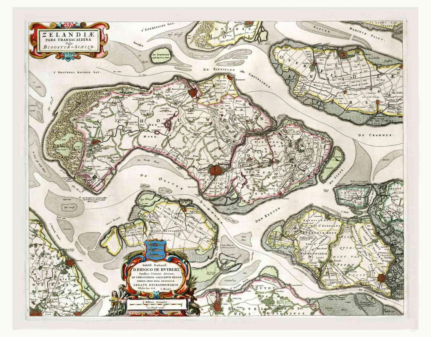 Kaart van Zeeland, Schouwen-Duiveland, in 1664 uitgegeven door Joan Blaeu.
