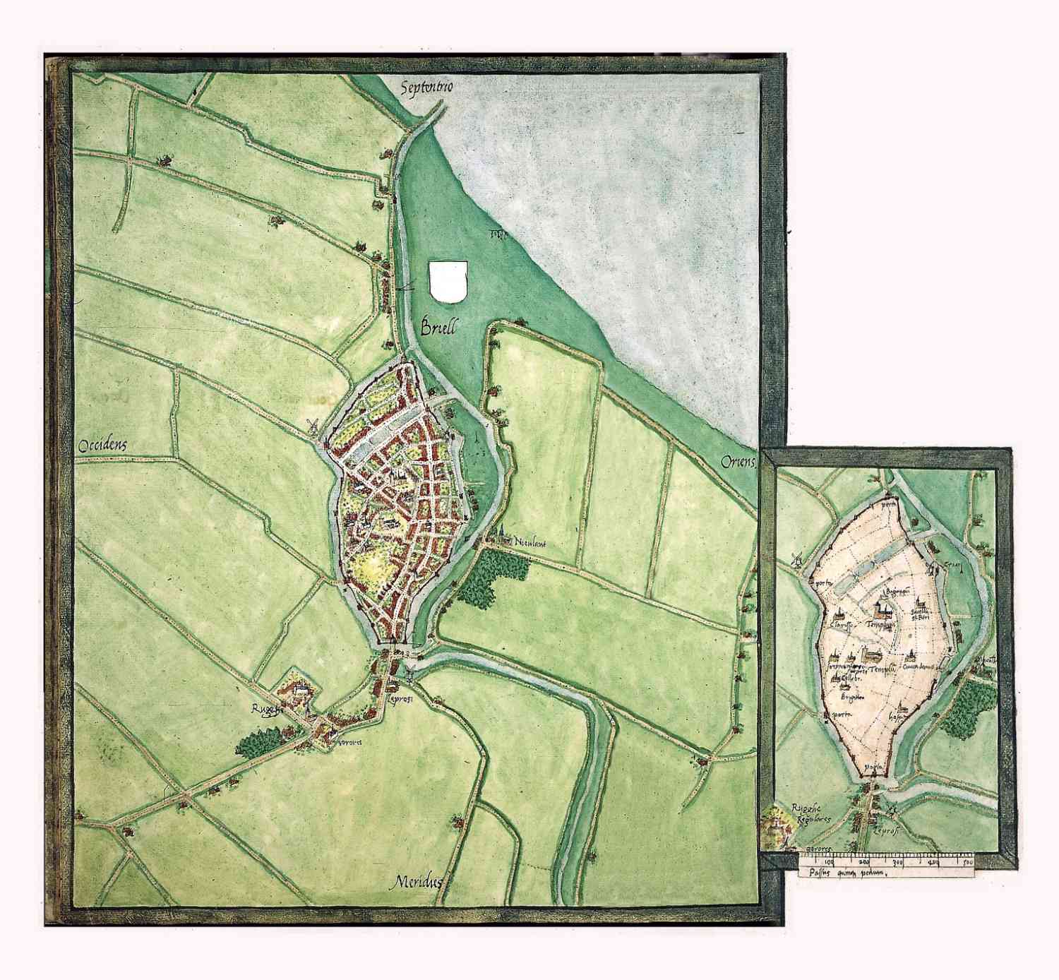 Zeer oude kaart van Den Briel, in 1545 met de hand getekend door Jacob van Deventer.