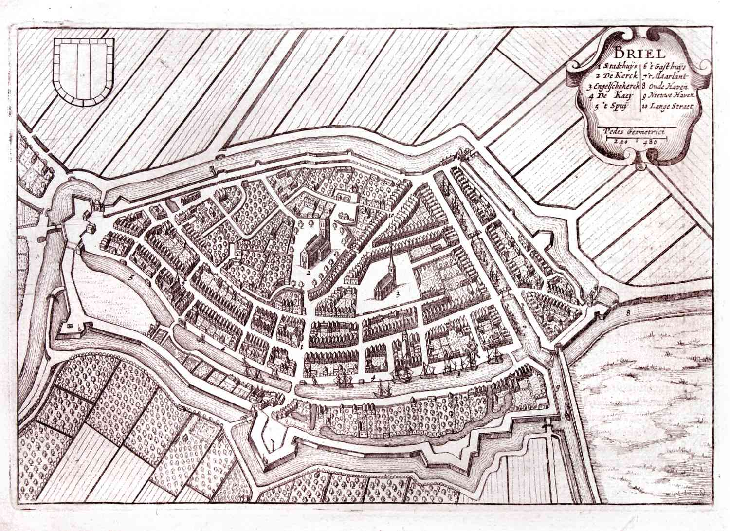 Ongekleurde kaart van Brielle  1632.