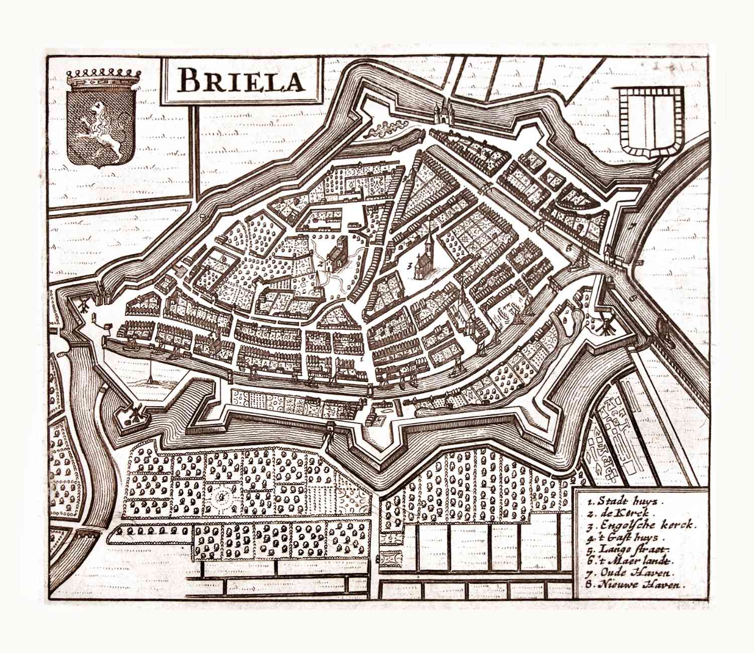 Klein ongekleurd kaartje van Brielle door Guiccardini.