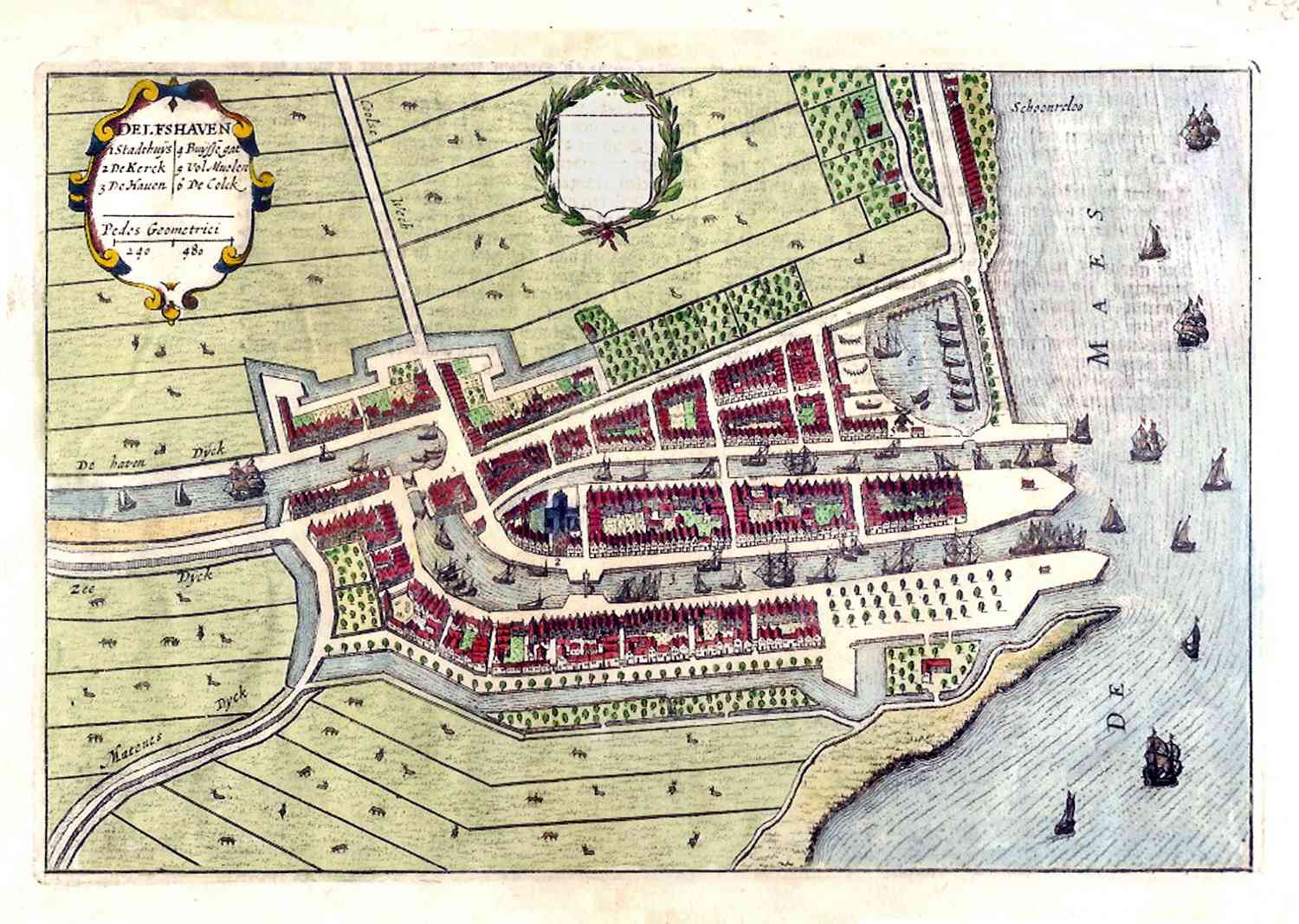 Stadsplattegrondje van Delfshaven uitgegeven in 1634 door Boxhorn.