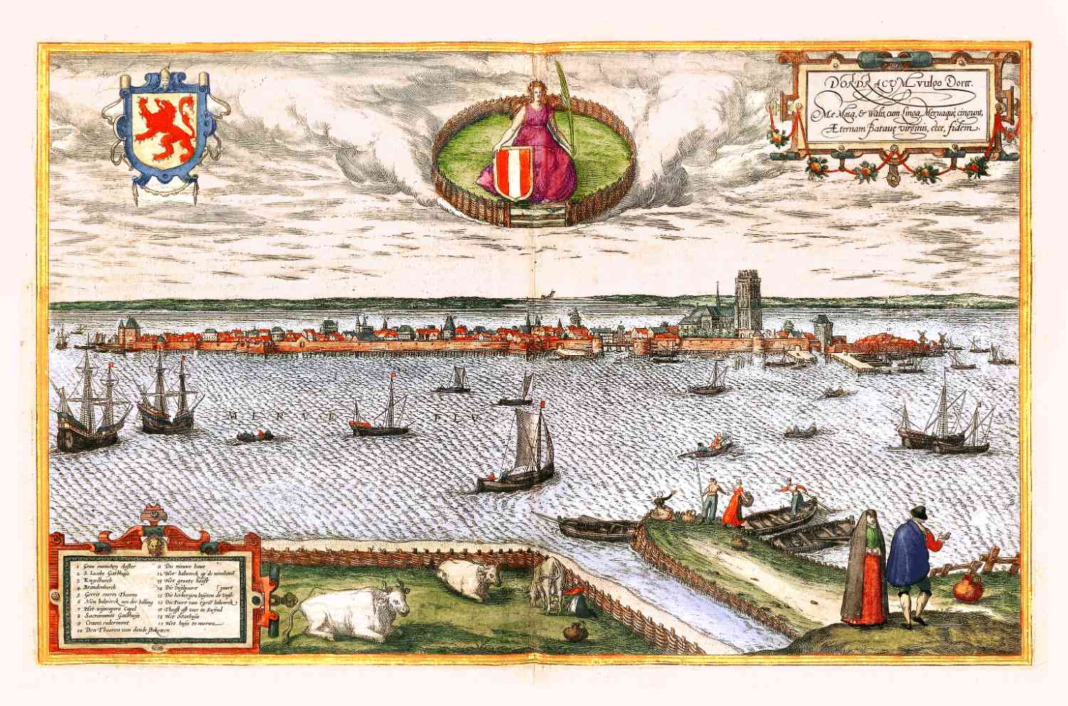 Gezicht op Dordrecht in 1572 uitgegeven door Braun en Hogenberg.