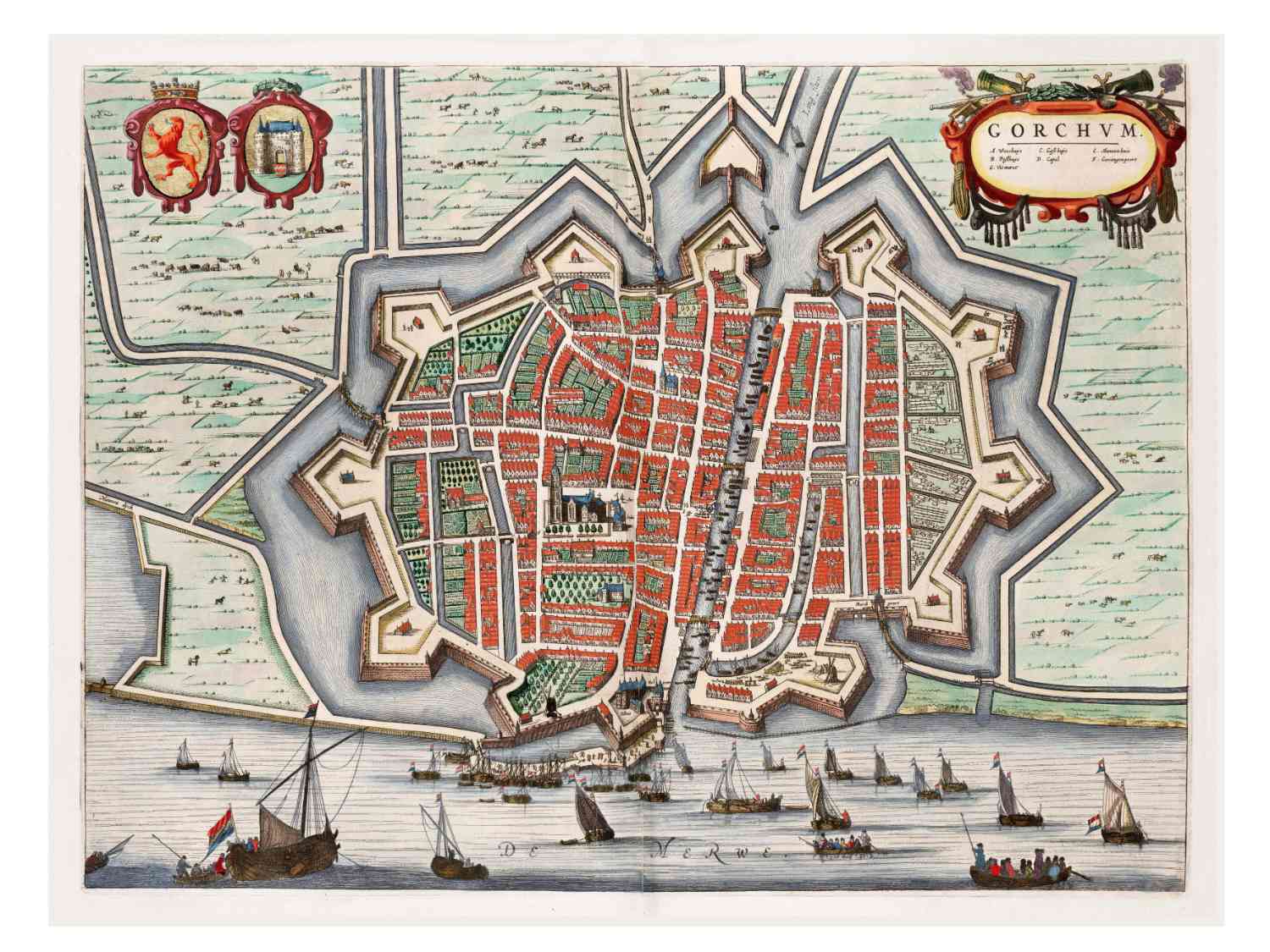 Stadsplattegrond van Gorkum uit 1649 uitgegeven door Joan Blaeu.