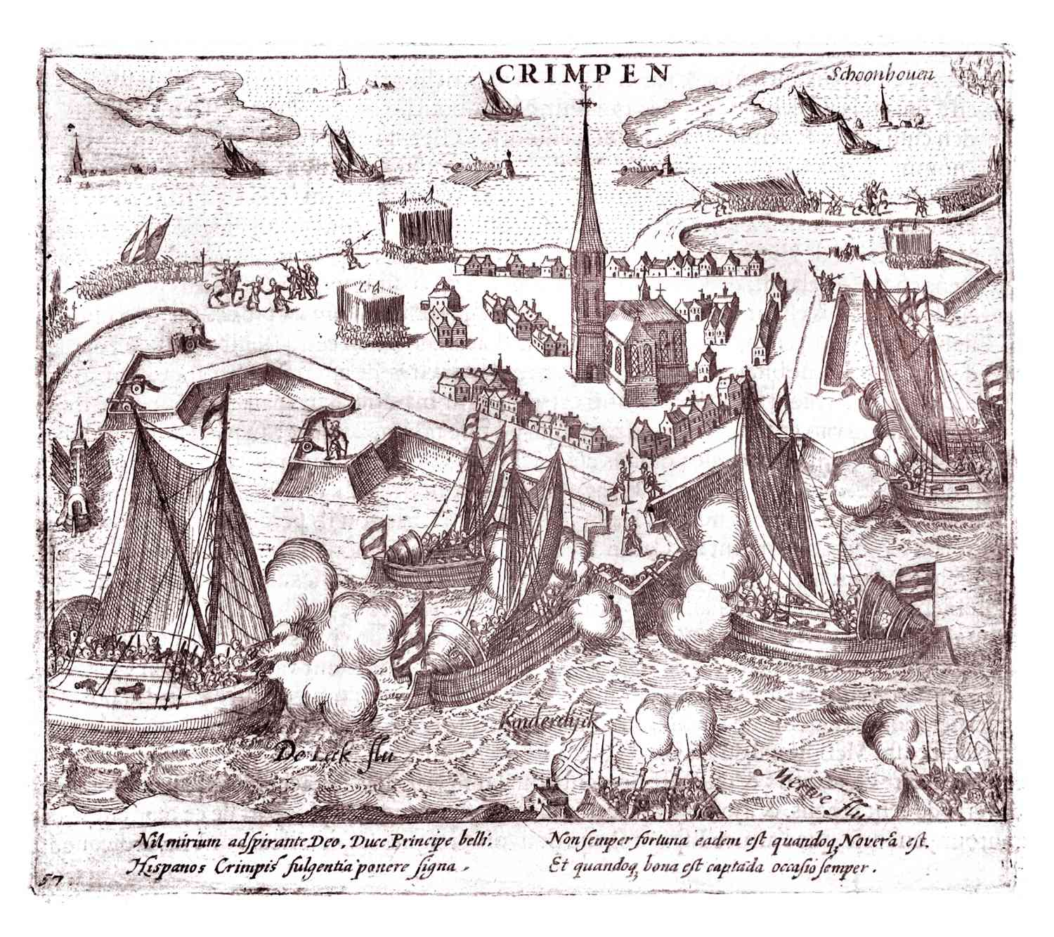 Beeld van de belegering van Krimpen aan de Lek in 1616 gepubliceerd door Baudartius.