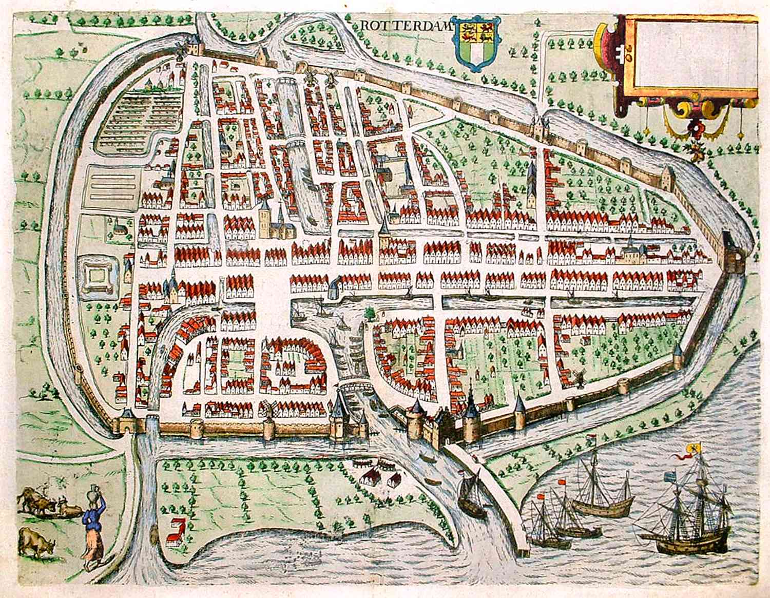 Stadsplattegrond van Rotterdam gemaakt door Guiccardini, uitgegeven in 1609.