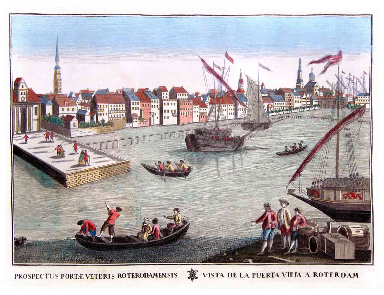 Gezicht op de haven van Rotterdam in 1780 gemaakt door Remondini.