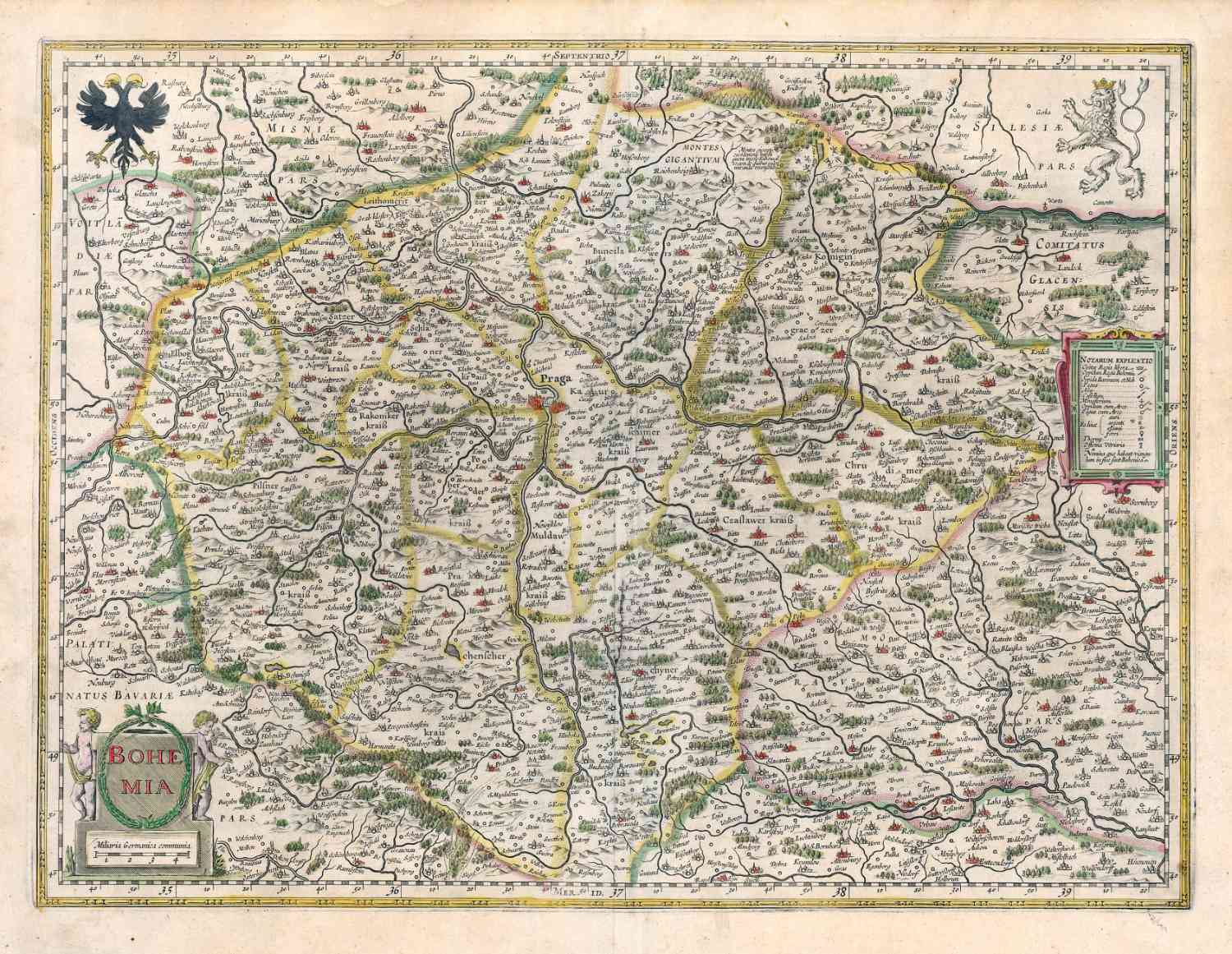 Kaart van Bohemen, thans een deel van Tsjechië. In 1645 uitgegeven door Willem Blaeu.