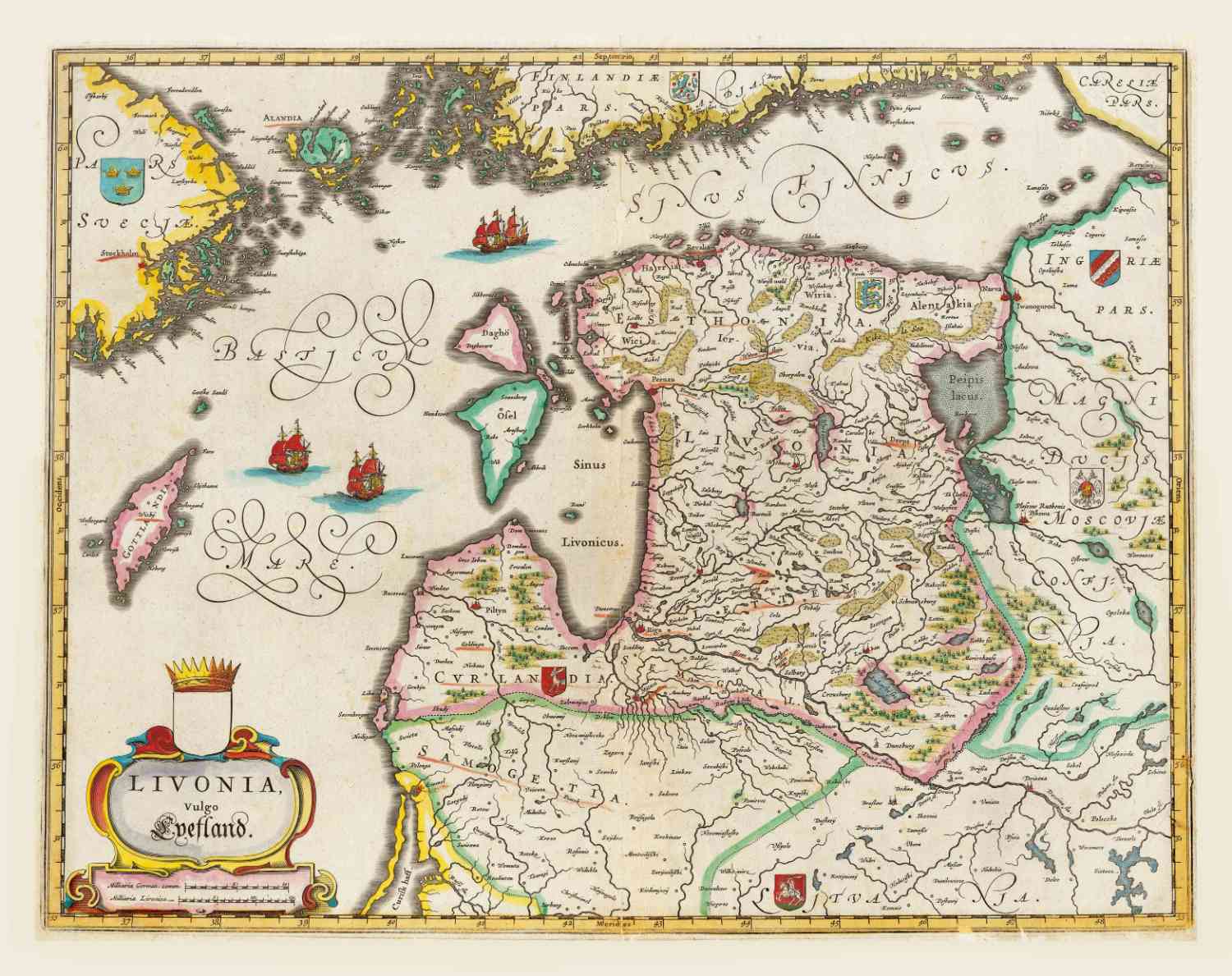 Kaart van de Oostzeestaten Estland en Letland in 1662 uitgegeven door Joan Blaeu.