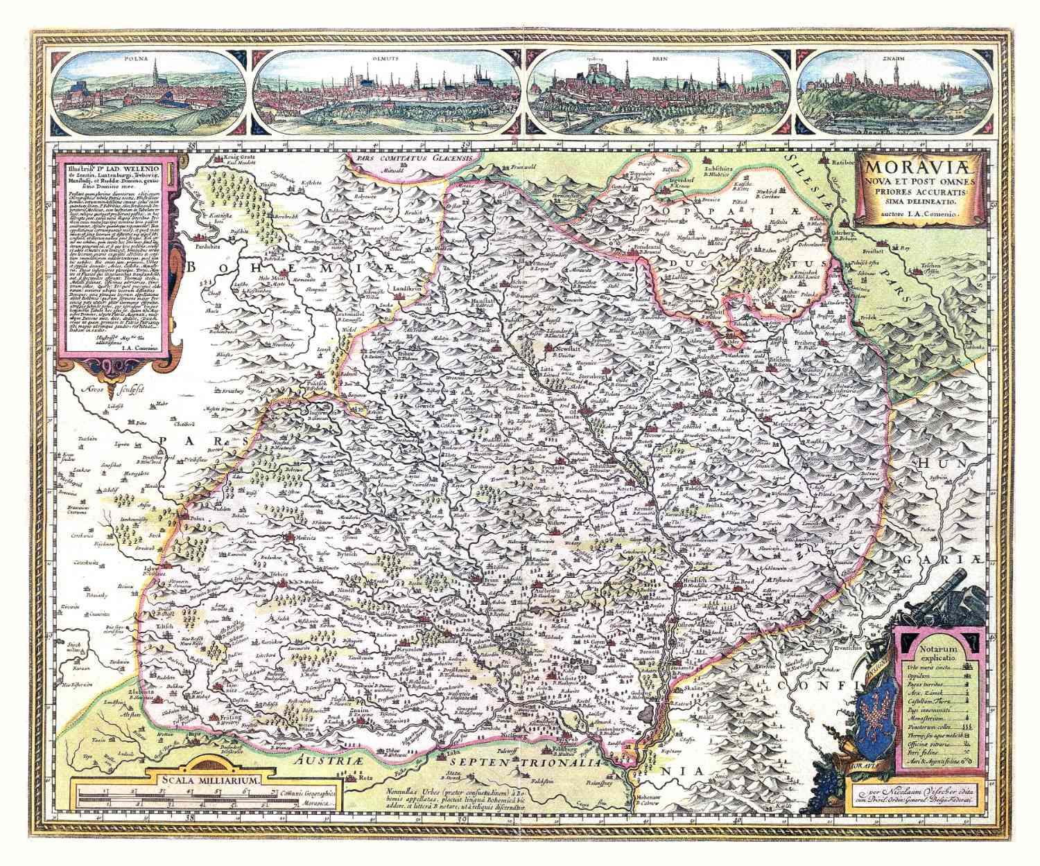 Kaart van Moravia, het huidige Tsjechie, in 1627 uitgegeven door Visscher.