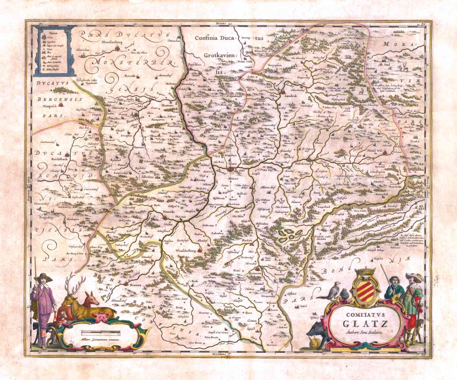 Kaart van Silezie met in het midden de stad Glatz (nu de Poolse stad Klodzko), in 1640 uitgegeven door Blaeu.