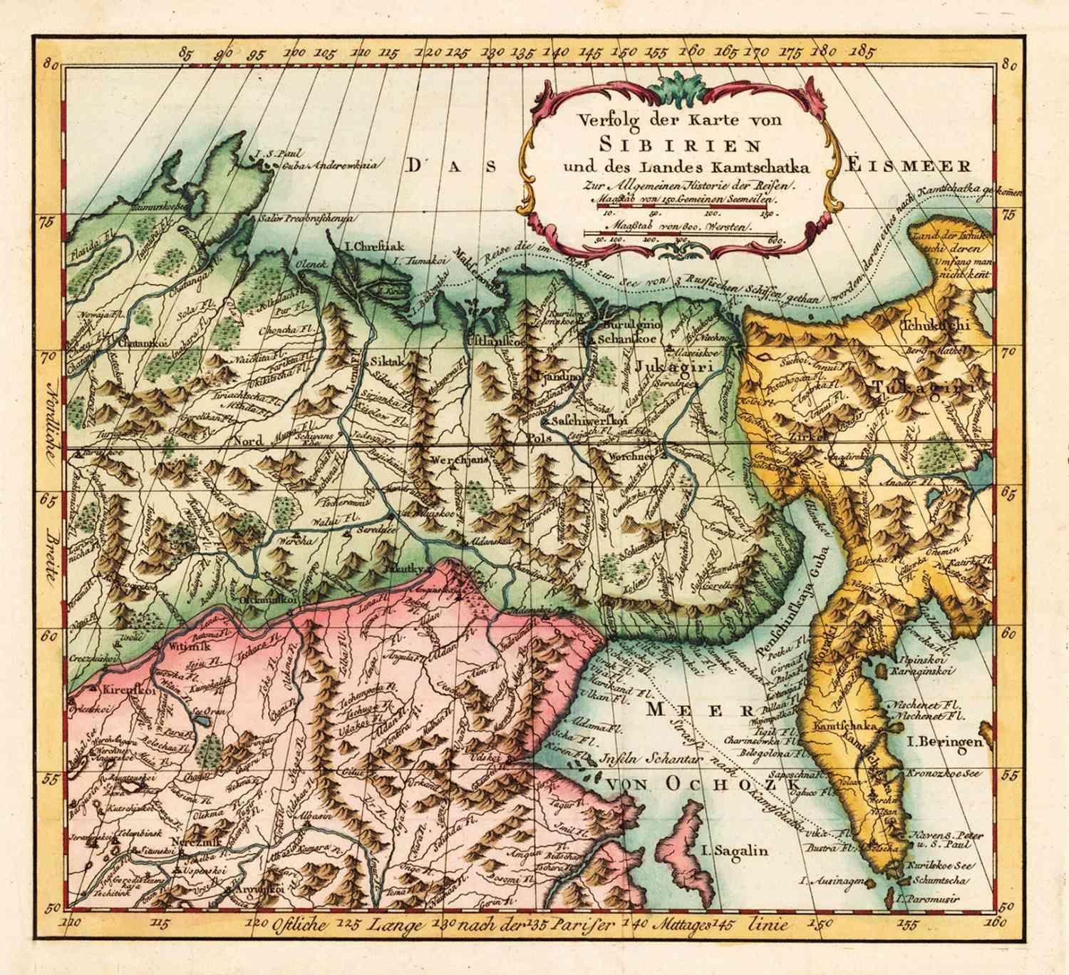 Kaart van Siberië, in 1756 uitgegeven door Bellin.