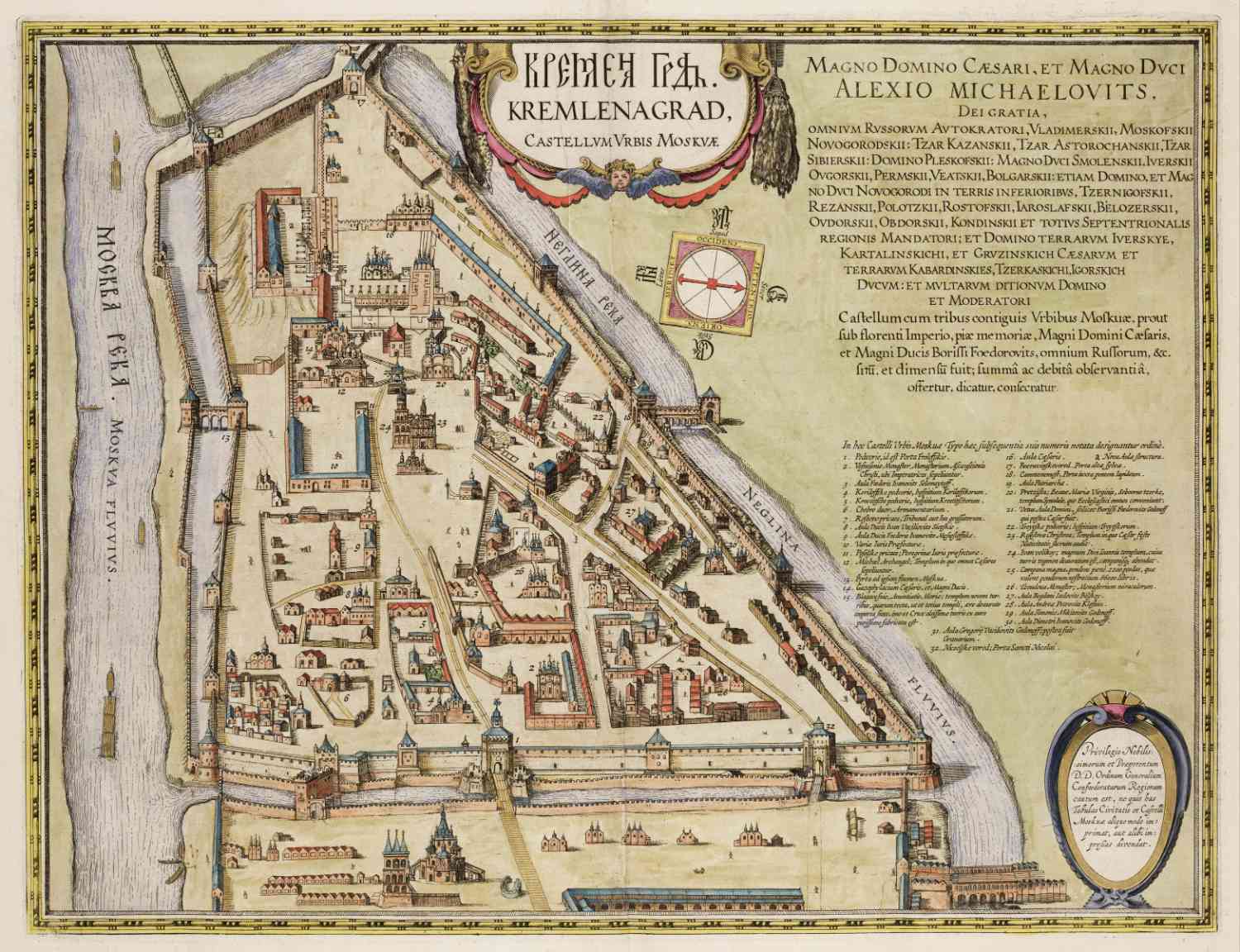 Plattegrond van het Kremlin in Moskou, in 1664 uitgegeven door Joan Blaeu.