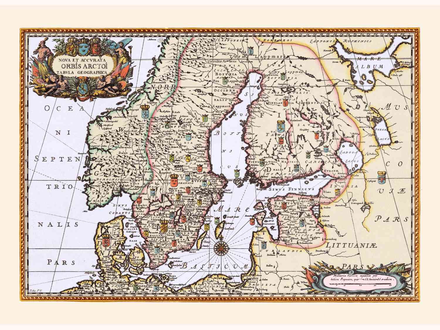 Kaart Orbis Arctoi, Scandinavië in 1667 uitgegeven door Erik Dahlberg.